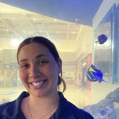 “Kasidy has been passionate about animals and conservation her entire life. A lifelong Indiana resident, she earned her degree from Ball State University. Before joining Aquamoon, Kasidy gained valuable experience as a macaw keeper at the Indianapolis Zoo, where she developed a strong foundation in animal husbandry and training.